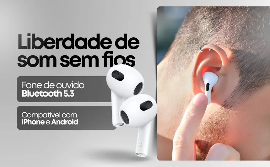 Fone De Ouvido Sem Fio Bluetooth 5.3 Compatível iPhone Android Com Microfone e Redução de Ruído Wireless Academia Corrida Musicas Graves Potentes Controle Touch,À Prova D'água HiFi Branco