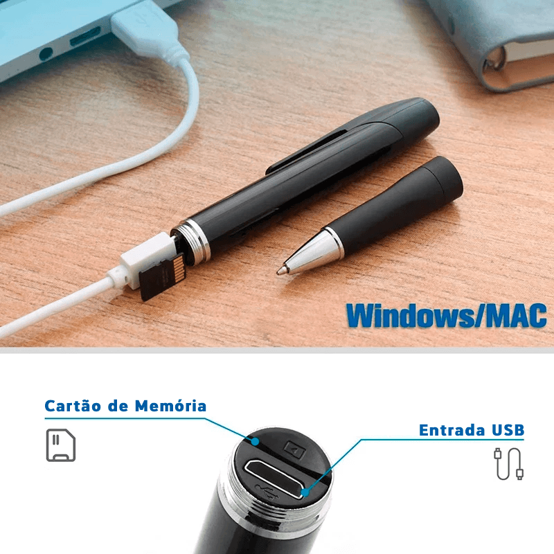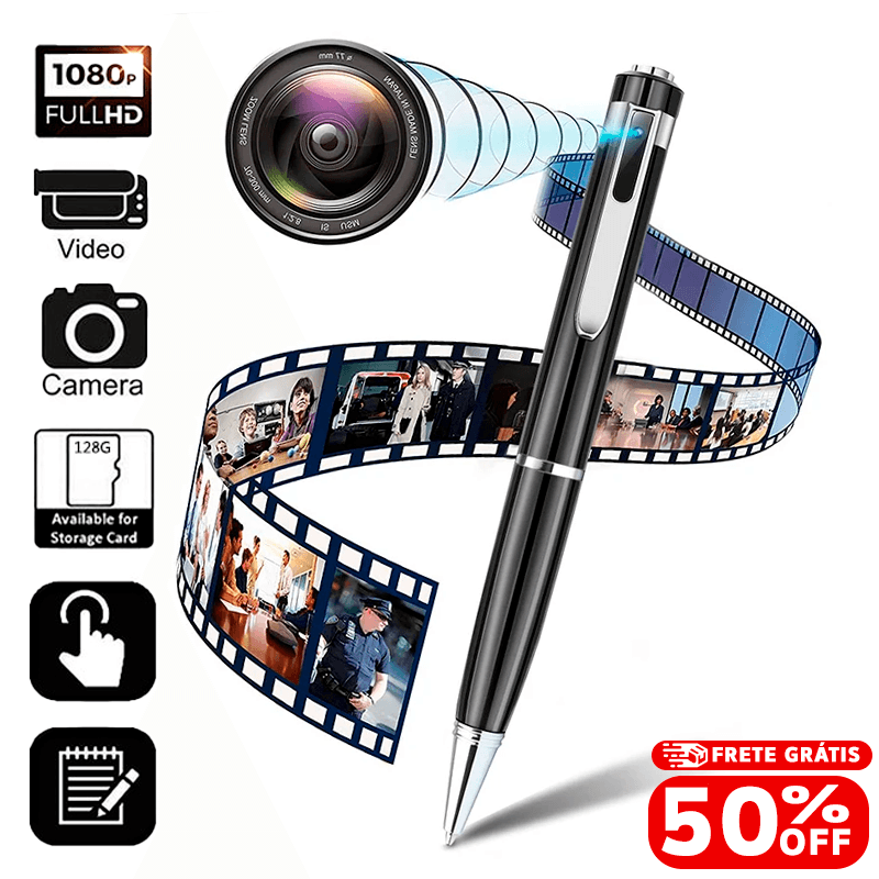 Caneta Espiã com escuta e Câmera 1080P filma tira foto Grava/SecretPen