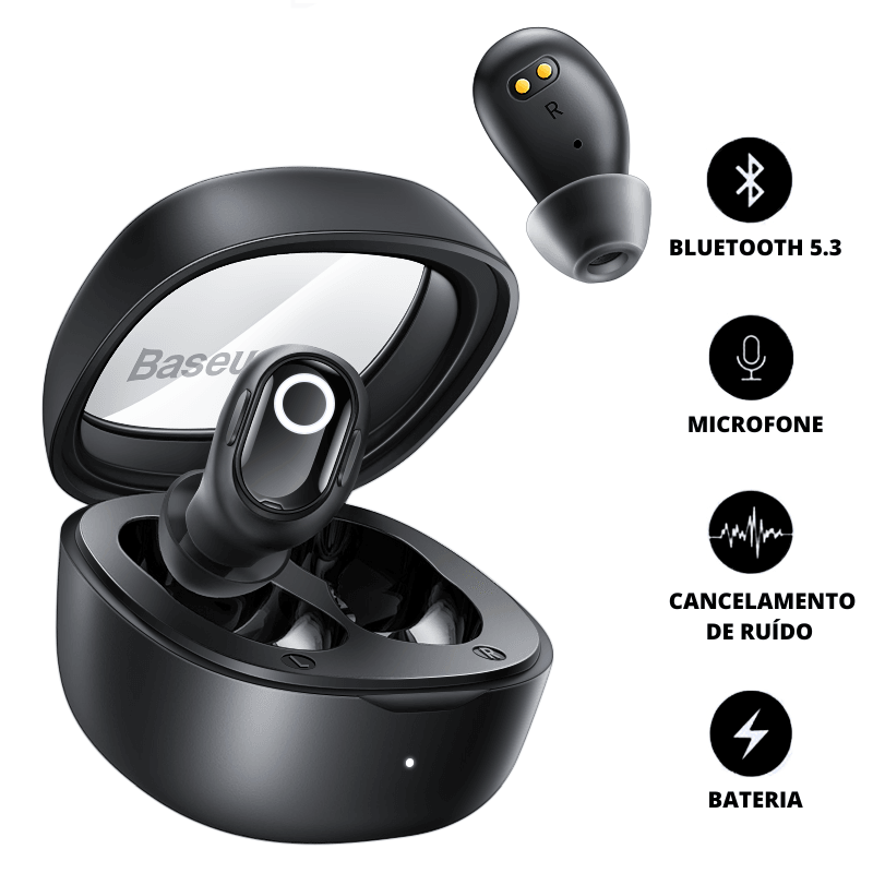 Design exclusivo em forma de cápsula para o estojo e excepcional qualidade de som para os fones de ouvido. Além disso, as luzes indicadoras do anel realmente adiciona uma vibração futurista a todo o design.