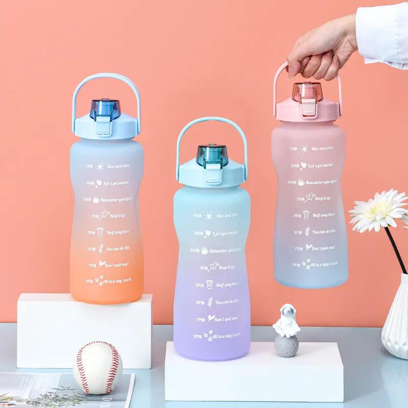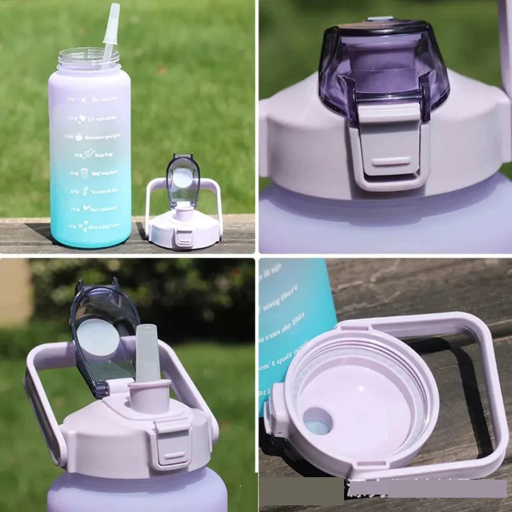 Tamanho da embalagem e peso: Tamanho: 29,5*10,5 cm Peso: 280g Descrição: garrafa de água de grande capacidade 2 litros com capacidade de salto, lembrete de escala de tempo à prova de vazamento copo fosco, esportes ao ar livre e fitness.